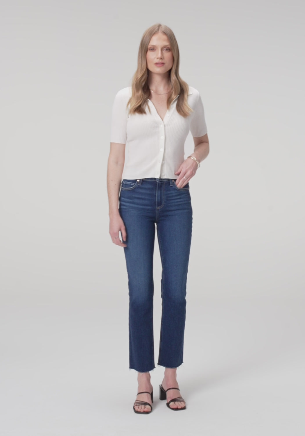 PAIGE’s petites collection features our favorite styles specially contoured to fit and flatter a smaller frame. Catering to women 5’ 4" and under, our denim has been proportionally rescaled with a 2" shorter inseam and higher knee and mid-thigh placements. From top to bottom, we’ve rethought and redesigned our bestsellers for our petite customer who’s looking for the same great fit. This high-rise perfectly straight leg comes in crisp white with a raw hem and is crafted from comfort stretch denim with plenty of coverage and the perfect amount of stretch.