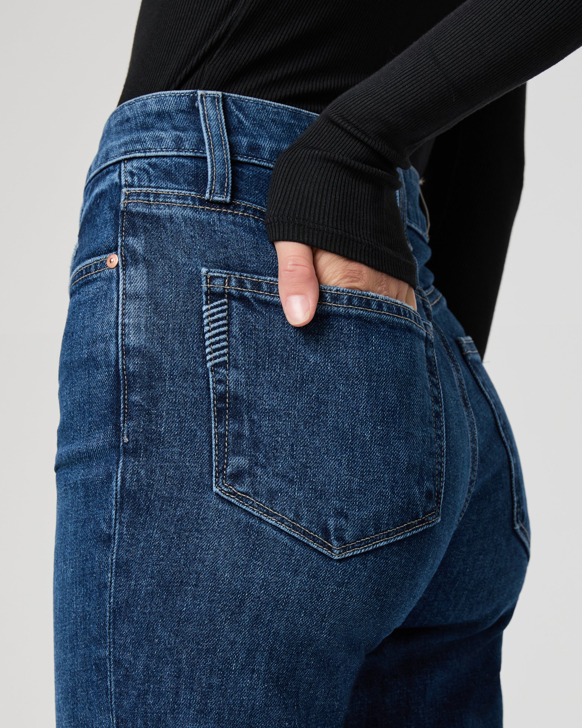 Stevie is our high-rise straight leg with a 31" inseam. In a clean and classic dark wash, this pair is crafted from heritage-inspired denim with a soft hand-feel and a hint of stretch.