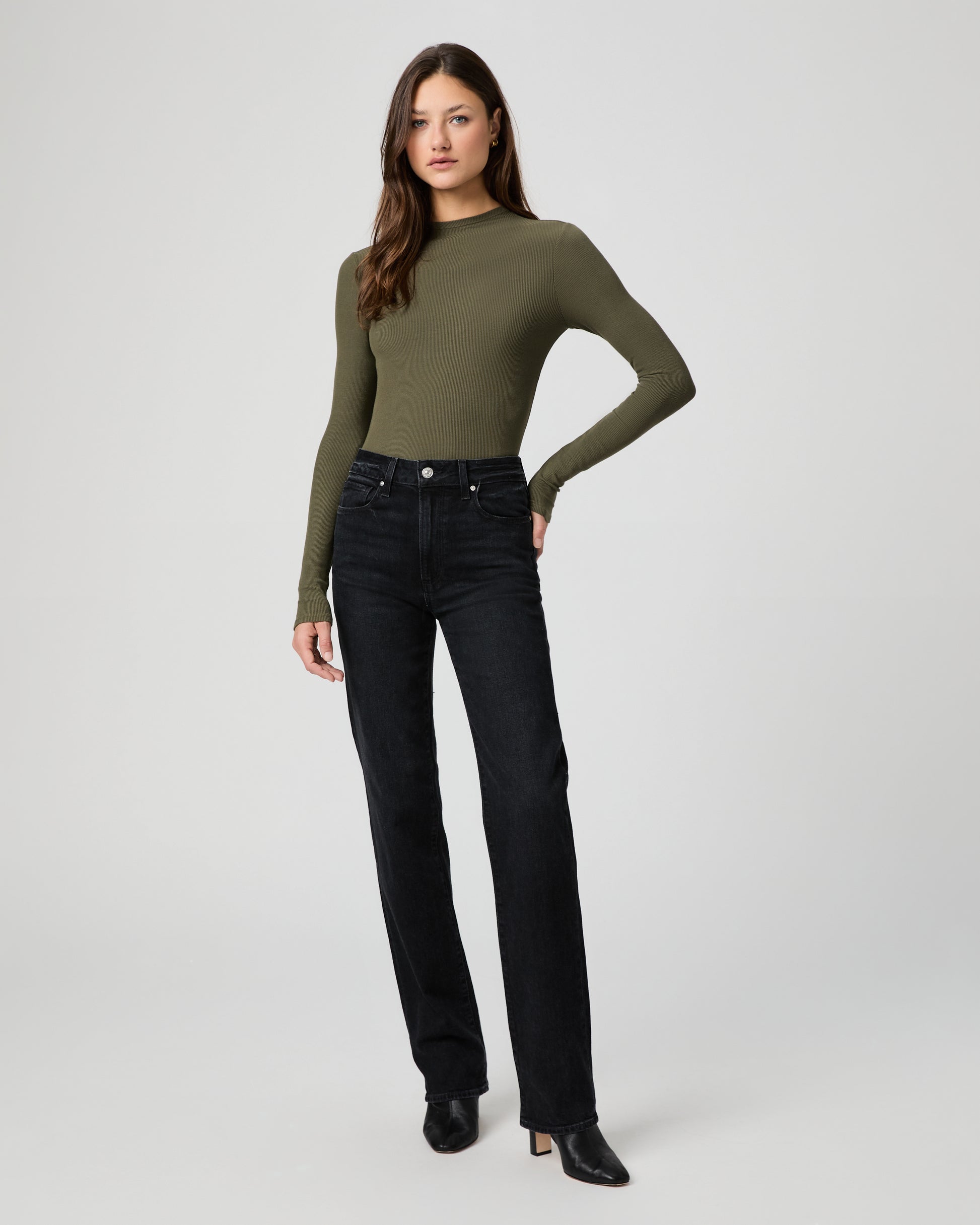 Stevie is our high-rise straight leg silhouette. In an elevated black wash, this pair is crafted from heritage-inspired denim with a soft hand-feel and a hint of stretch.